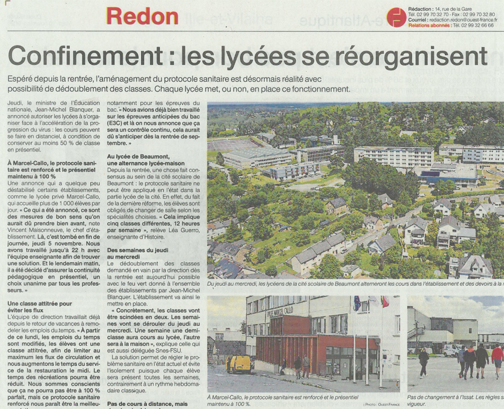 A Marcel Callo, le protocole sanitaire est renforcé et le présentiel maintenu à 100%