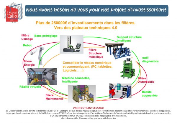 Le choix du lycée Marcel CALLO est déterminant pour nous permettre de maintenir notre niveau d’équipement et former le mieux possible vos futurs collaborateurs.