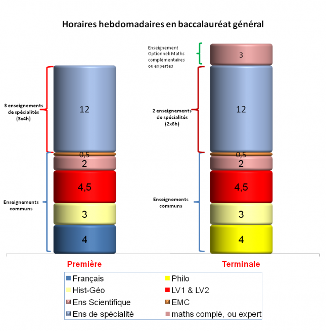 Les classes de Première et de Terminale de la voie générale comprendront : un socle de culture commune et des disciplines de spécialité choisies par les lycéens.