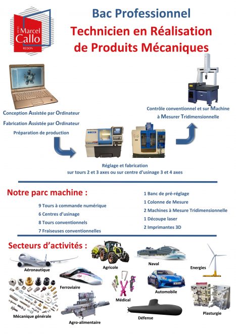 "Pour conclure il est important de dire que l’industrie recherche beaucoup de techniciens sachant piloter des machines à commande numérique dans divers secteurs : automobile, aéronautique, navale, armement, médical… En effet, il y a plus d’offres d’emplois que de demandes à cause d’une charge importante de travail. Par exemple, les entreprises ont communiqué environ 53 offres d’emplois pour 22 élèves en terminale au lycée Marcel Callo, dans un rayon de 60 km autour de Redon en Janvier 2017. Cela indique qu’il y a des débouchés professionnels garantis. C’est pourquoi je vous encourage à venir découvrir cette formation lors des portes ouvertes, ne serai-ce que par pure curiosité."
