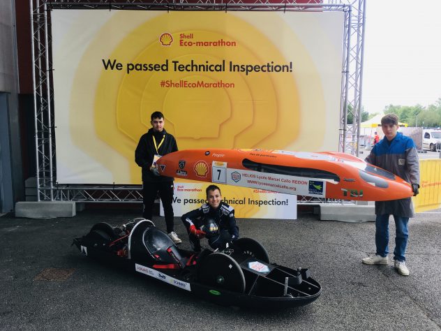 A noter : L’ancien directeur de l’éco-marathonshell (Gilles Vanier) a apprécié que les jeunes lycéens gèrent quasiment en autonomie la présentation du véhicule pour le passage du contrôle technique et le départ de course (merci Guy).