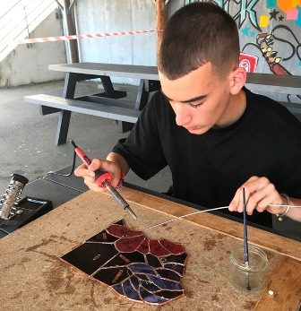 Cette année, la classe de 1PV a réalisé un vitrail collectif pour la porte d’entrée du CDI avec l’aide la vitrailliste, Alice Fairhead. Une belle collaboration entre les arts appliqués et le CDI.