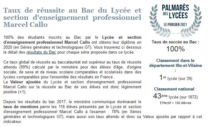 Le lycée Marcel Callo est très bien placé avec :