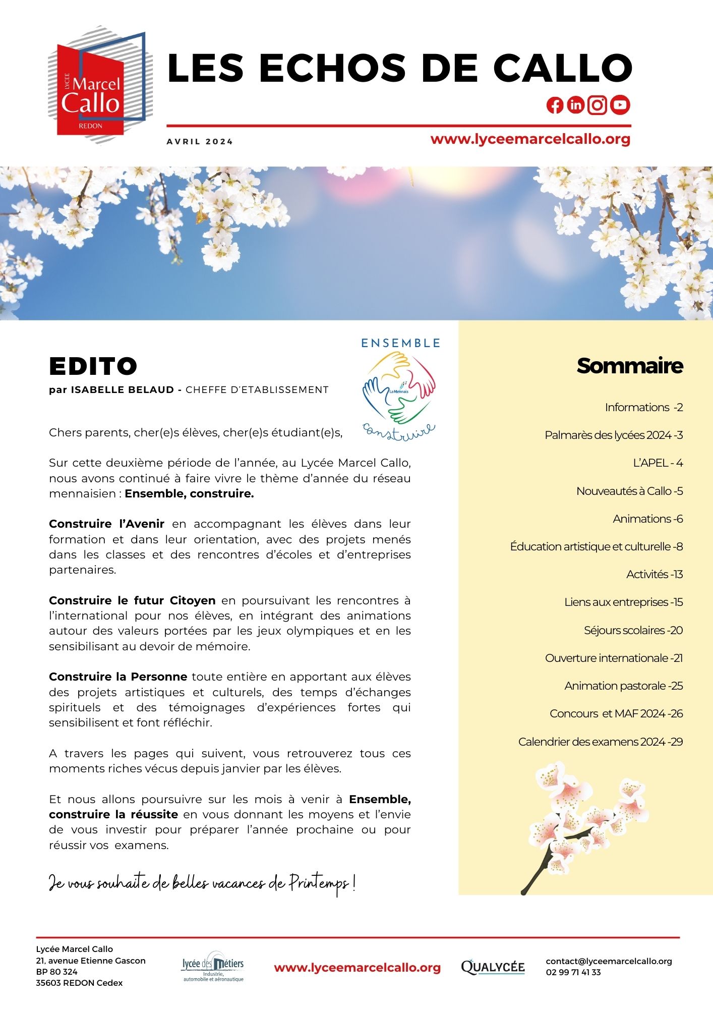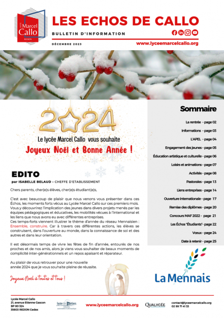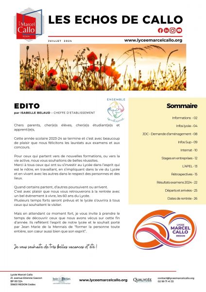 Veuillez retrouver ci-après les publications du lycée réalisées au cours de l’année :