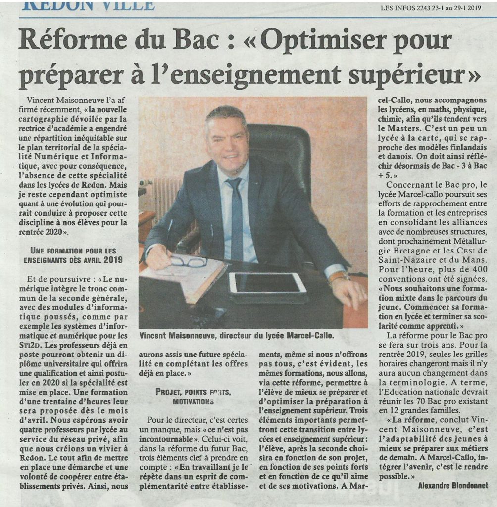 M. Maisonneuve, chef d’établissement, a répondu aux questions du journal « Les Infos » sur les réformes du BAC